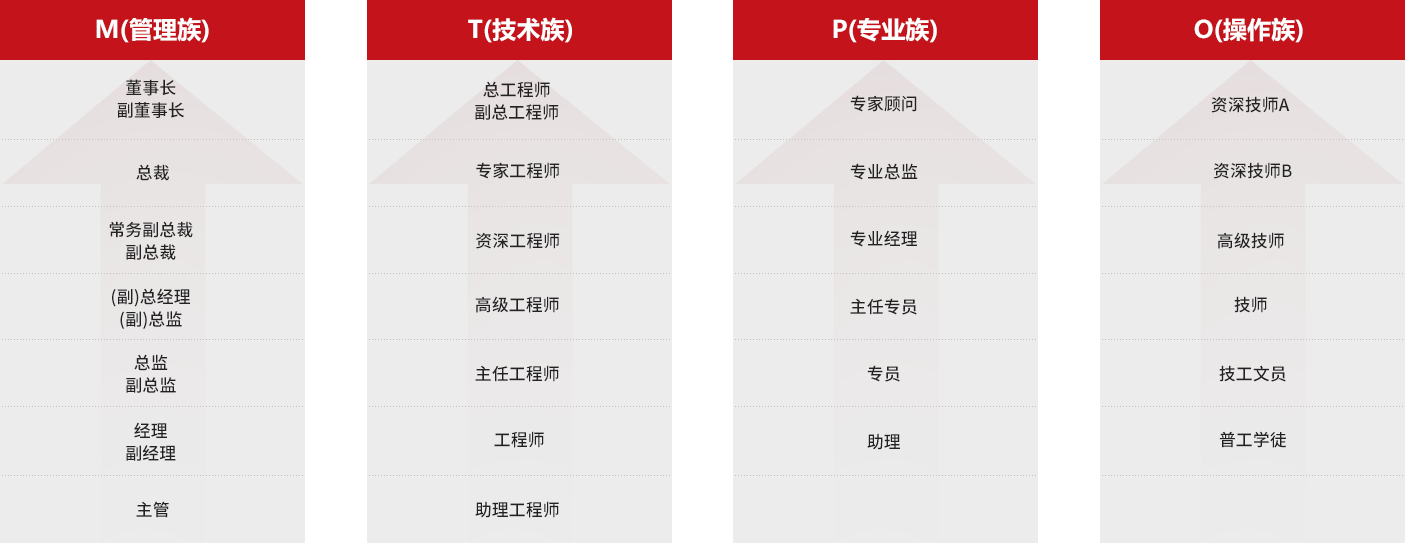 四通道发展路径,为不同类型人才提供畅通的职业发展通道及广阔的成长空间。