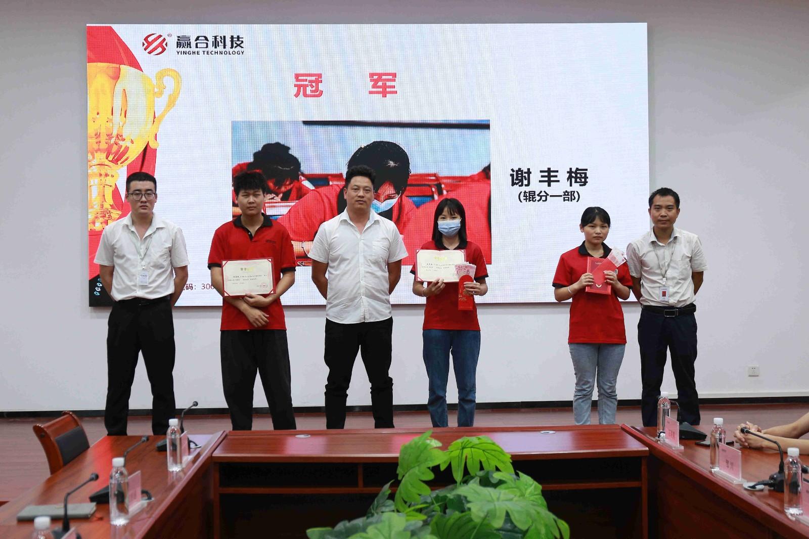 在经历过激烈的技能比拼,最终辊分一部丨谢丰梅、辊分一部丨曾永艳、辊分三部丨黄诗妍分别摘得预制线比赛的冠亚季军,辊分三部丨阮世刘、辊分四部丨梁嘉洋、辊分三部丨李庆添分别摘得板面接线比赛的冠亚季军,并分别获得竞技大赛证书与奖金600元、400元、300元,同时所有参赛学员获得“培训纪念礼品”一份。